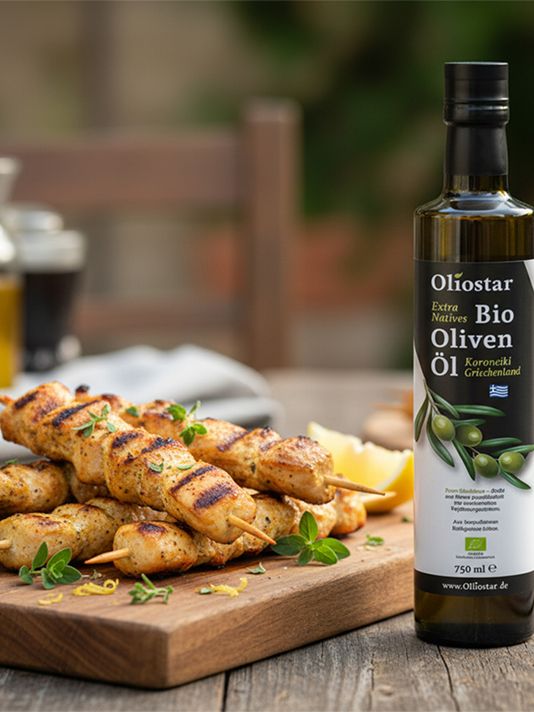 Das Würzprofil von Oliostar Koroneiki Extra Virgin hebt die Kräuter-Note des Souvlaki hervor und sorgt für saftige, aromatische Spieße.